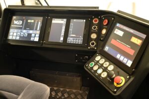 Particularly noteworthy and the most important reason for our visit was the promising CBTC (Communication-Based Train Control) train control and guidance system. For the manufacturer Stadler, this presented a unique opportunity to install their newly developed system as a first application and test facility in this isolated operation, where everything is new. All information is displayed to the train driver as pure cab signalling. There are no signals along the entire route and routes can be selected from the vehicle.
