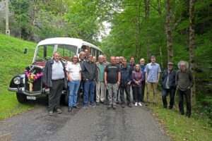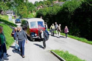 Many thanks to Elias Vogt for this exciting search for clues and to our driver Kaspar Bechter, who drove us safely along this challenging road and, with precision work, turned the coach just above this spot without a scratch.