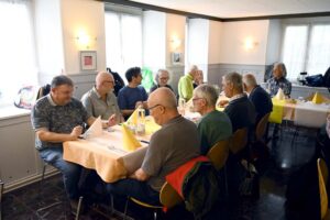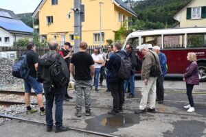 During the journey and at the sites we visited, Elias Vogt gave a fascinating account of the Wasserfallenbahn project, which was abandoned in 1875 after 15 months of construction. The Wasserfallenbahn was intended to be the shortest connection between Basel and Bern, handling all freight and passenger traffic. A generous double-track route with large radii and moderate gradients was planned. The Swiss Central Railway, which saw the project as competition for its own railway lines, sabotaged the project wherever possible.