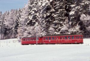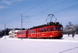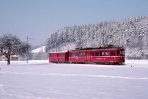 40 anni fa, nel Mittelland svizzero nevicava ancora più spesso, ma già allora la nebbia alta era un ospite fisso. Per questo motivo, il 16 febbraio 1985 fu una rara fortuna trovare sulla FW (Frauenfeld – Wil – Bahn) la combinazione di sole e neve appena caduta. Non ricordo se ci fosse un motivo particolare per quella giornata dedicata alla fotografia o se fosse semplicemente il mio intuito e la speranza di scattare delle belle foto… In ogni caso ne è valsa la pena e ne è nata una serie di foto degna di nota!