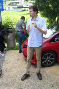 Ab Waldenburg startete die Fahrt mit dem Saurer Oltimerbus parallel zur Waldenburgerbahn bis Bubendorf Bad. Dort gab es eine Pause um unseren nächsten Führer, Elias Vogt, zu treffen. Vorgesehen war auch die Besichtigung der letzten Dampflok G. Thommen, die zusammen mit einem Plattformwagen in einem extra erstellten Gebäude geschützt aufbewahrt wird. Leider war das Gebäude verschlossen.